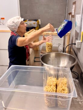 В ресторанта се намира и работилница за паста, където наблюдавахме цялостния процес по приготвяне на различни видове паста – от замесването на тестото до внимателното пакетиране и етикетиране, така че след това готовата паста да бъде доставена за продажба в местния хипермаркет. Младежите неуморно се включваха в дейности като разпределяне на пастата, пакетиране, етикетиране и сортиране за разнос.