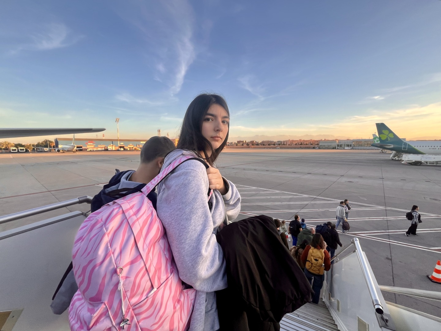 Полетът София – Маракеш излетя от Терминал 1 – това бе единствения полет извън Шенген за деня, нямаше много хора и бързо преминахме всички проверки. Бях се притеснила, тъй като единият от паспортите ни изтичаше след 5 месеца, а знам, че в много държави има изискване срокът на изтичане да не е по-малък от 6 месеца… но нямахме проблеми за това нито на отиване, нито на връщане. Полетът бе с продължителност 4 часа. Самолетът беше на 90% пълен и успяхме, без да плащаме допълнително за седалки, да седнем аз и децата заедно на един ред.