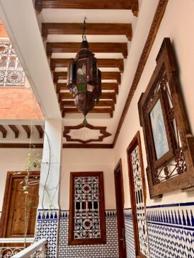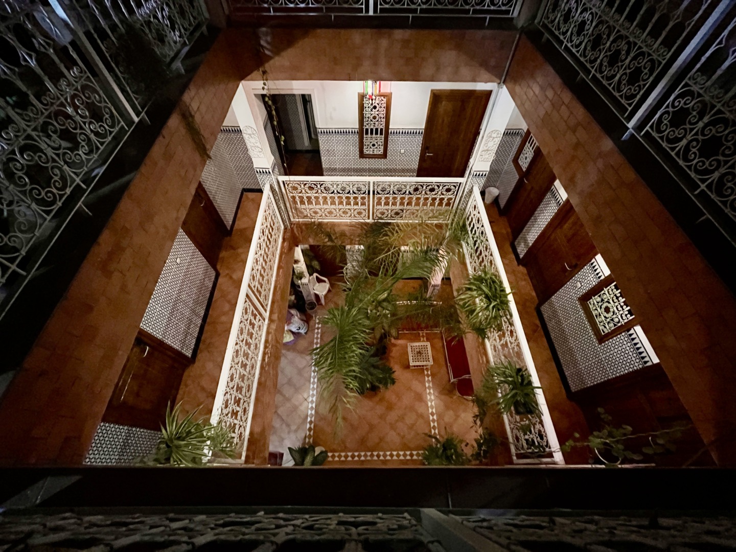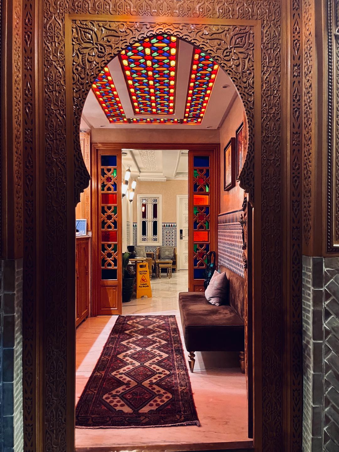 В хотела никой не ни очакваше, наложи се да изчакаме да дойде човек, за да се чекираме. Бях резервирала четворна стая, състояща се от две големи спални и имаше бонус – мивка в стаята. Санитарният възел беше общ и нямаше никъде къде да си оставим багажите. Въпреки това, реших точно в този хотел да нощуваме поради близостта му до Големия базар и това, че се намира в самата Медина. Въпреки централното си местоположение, през нощта бе учудващо тихо.