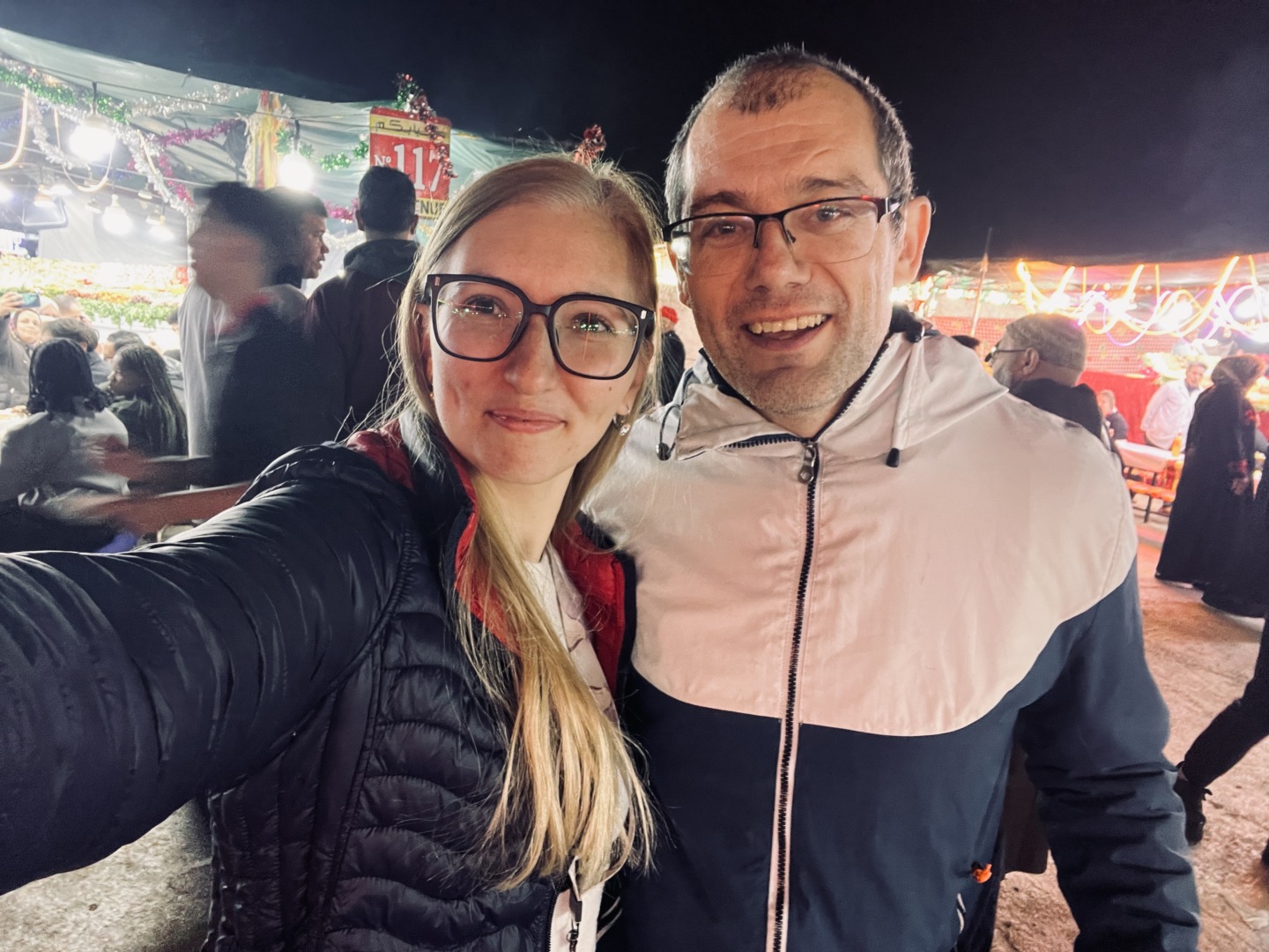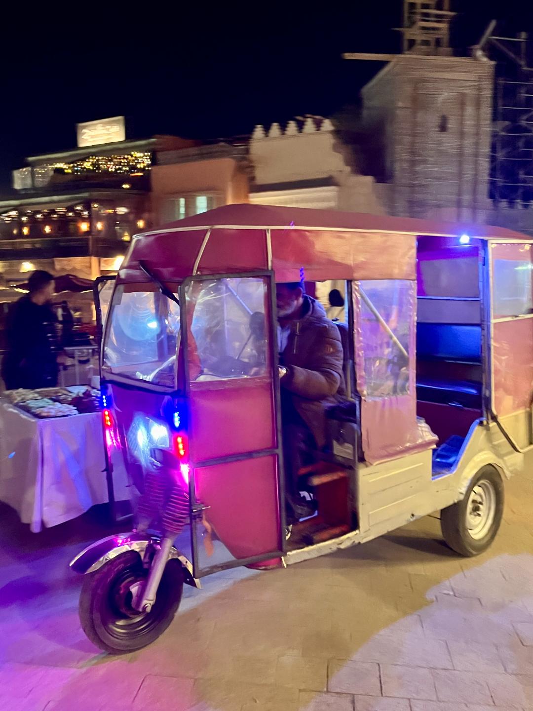 След вечеря оставихме децата в хотела и излязохме още веднъж само двамата с мъжа ми да попием от вечерната атмосфера на Големия базар. Отидохме и до Централната джамия на Маракеш, където бе пълно с каляски, теглени от двойка коне.
