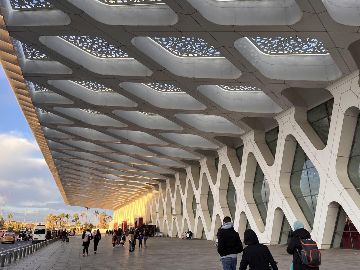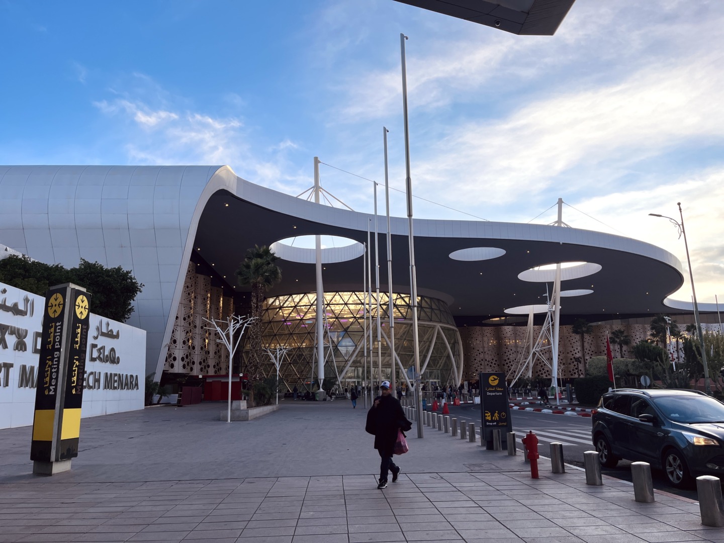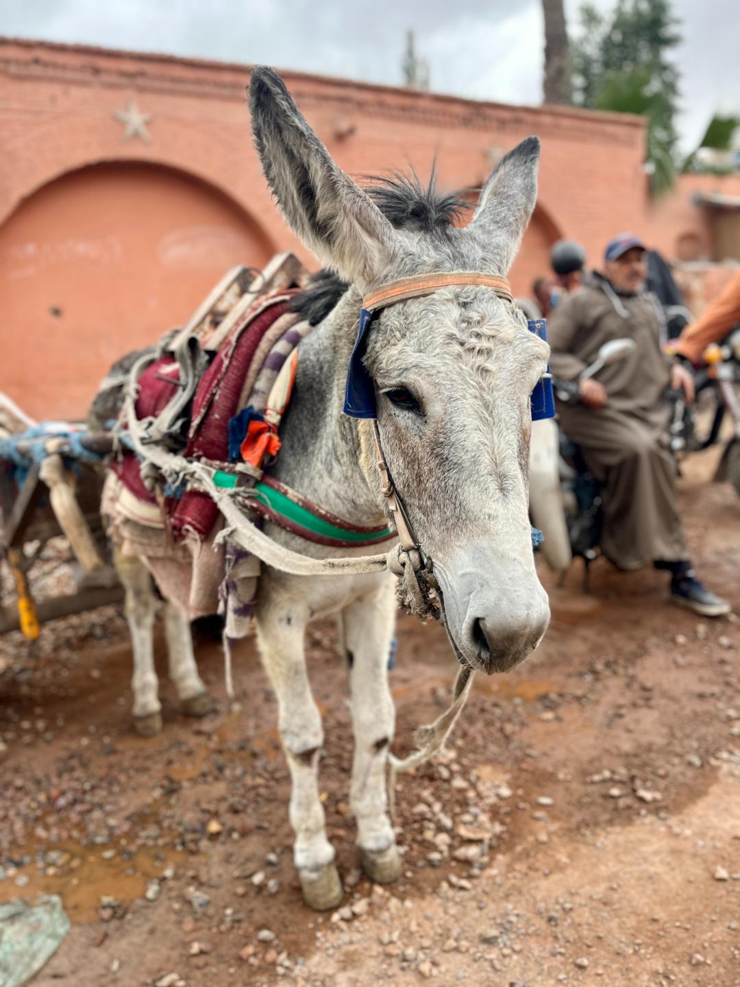 Проверките на летището минахме много бързо, защото бяхме от най-първите. Летището имаше модерен изглед. От хотел Atlas бях ангажирала шофьор, които да ни вземе от летището и да ни закара до хотела. Шофьорът ни чакаше отпред и първите ни впечатления за Маракеш бяха силно положителни до момента, в който видяхме една пешеходна улица, пълна със сергии и много народ и шофьорът каза: “Дотук сте. Оттук тръгвате, вървите 200 метра през тълпата, завивате и ще стигнете до хотела.” Не можете да си представите ужаса в очите на децата 🙂 Това се наложи тъй като в Медината почти няма улици, през които може да премине автомобил, а само мотопеди и разни триколки.