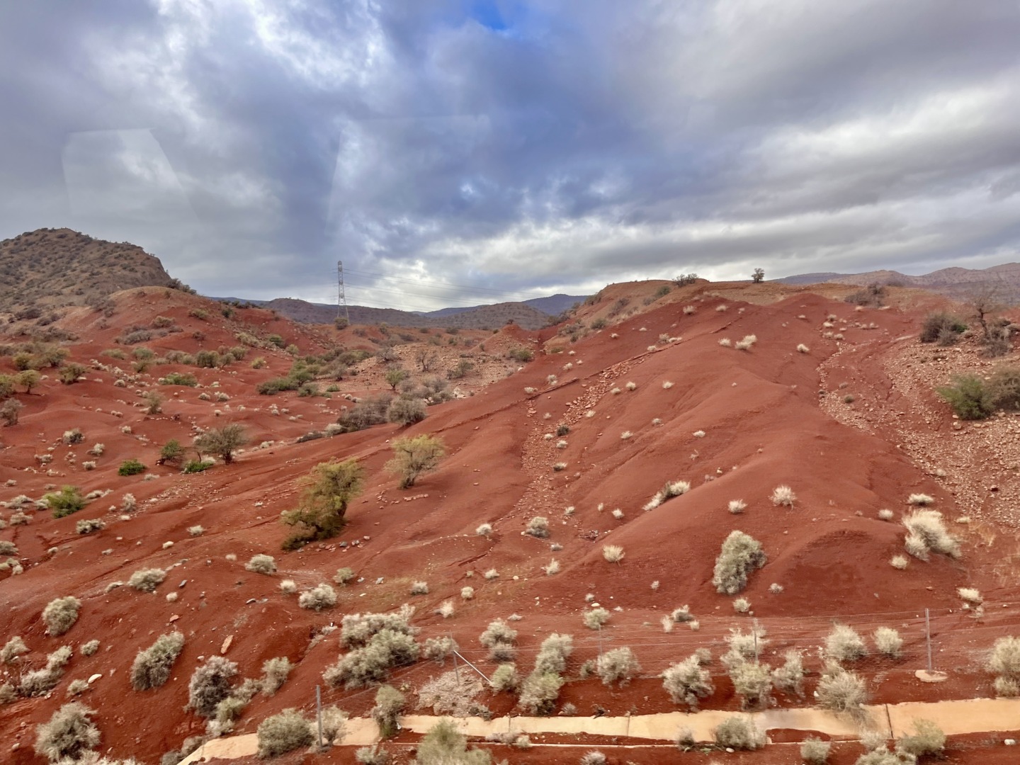 Автобусите са ужасно амортизирани и с изгризани седалки, но въпреки това пътуването, което продължи около 4 часа, бе спокойно без никакви обезпокояващи моменти. По едно време преди да се качим на магистралата за Агадир, автобусът спря за тоалетна и хапване – имаше както малък магазин, така и готвена храна и задължително – множество чешми на открито. Пейзажите по пътя бяха неочаквано красиви – имаше палитра от цветове – пустиня в бежово, керемидено червено и кафяво.