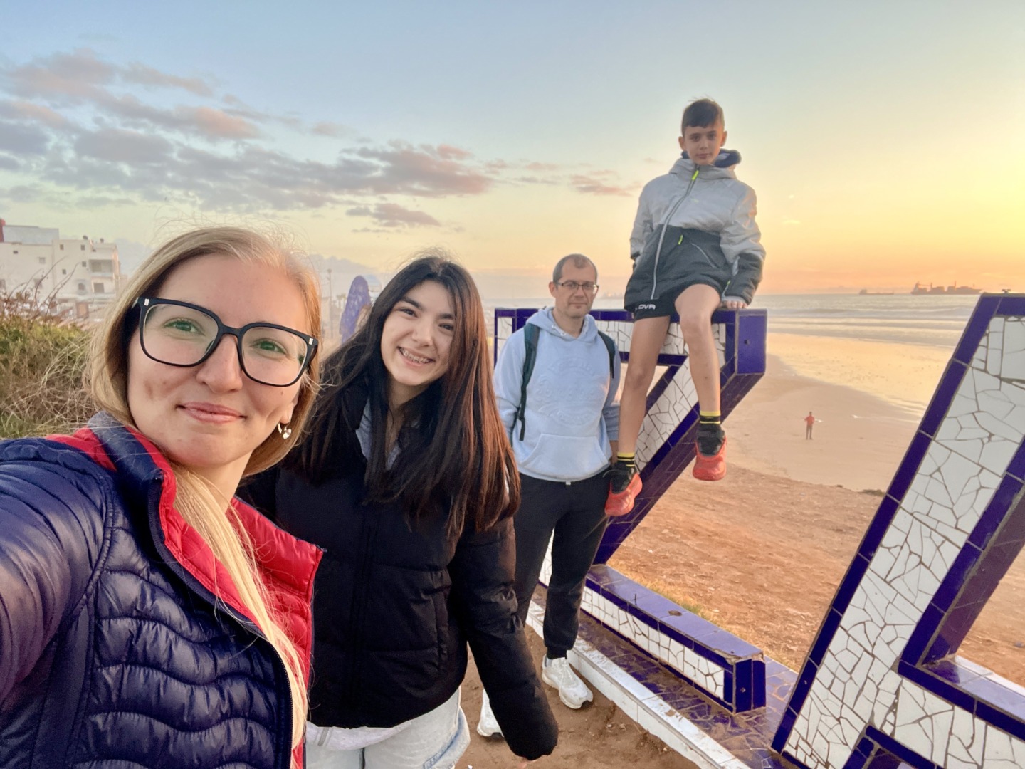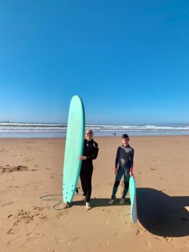 За разлика от предния път, когато температурите на въздуха и водата бяха повече от прекрасни, тук в Мароко като цяло си измръзнахме, не очаквахме времето през Декември там да е толкова подобно като в Пловдив по същото време. Температурата на водата бе 16 градуса и затова когато наемахме дъските за сърф, поискахме да ни дадат и неопренови костюми като аз лично бях много резервирана доколко те ще ни предпазят от студената вода. Като подминем темата за хигиената на тези костюми и това, че вероятно никога не са били прани, а само ги простират да съхнат до следващото ползване, трябва да призная, че тези неопренови костюми наистина пазеха от студа. Сърфираме спокойно около час и половина и може да ни е било солено в устата, но не и студено!