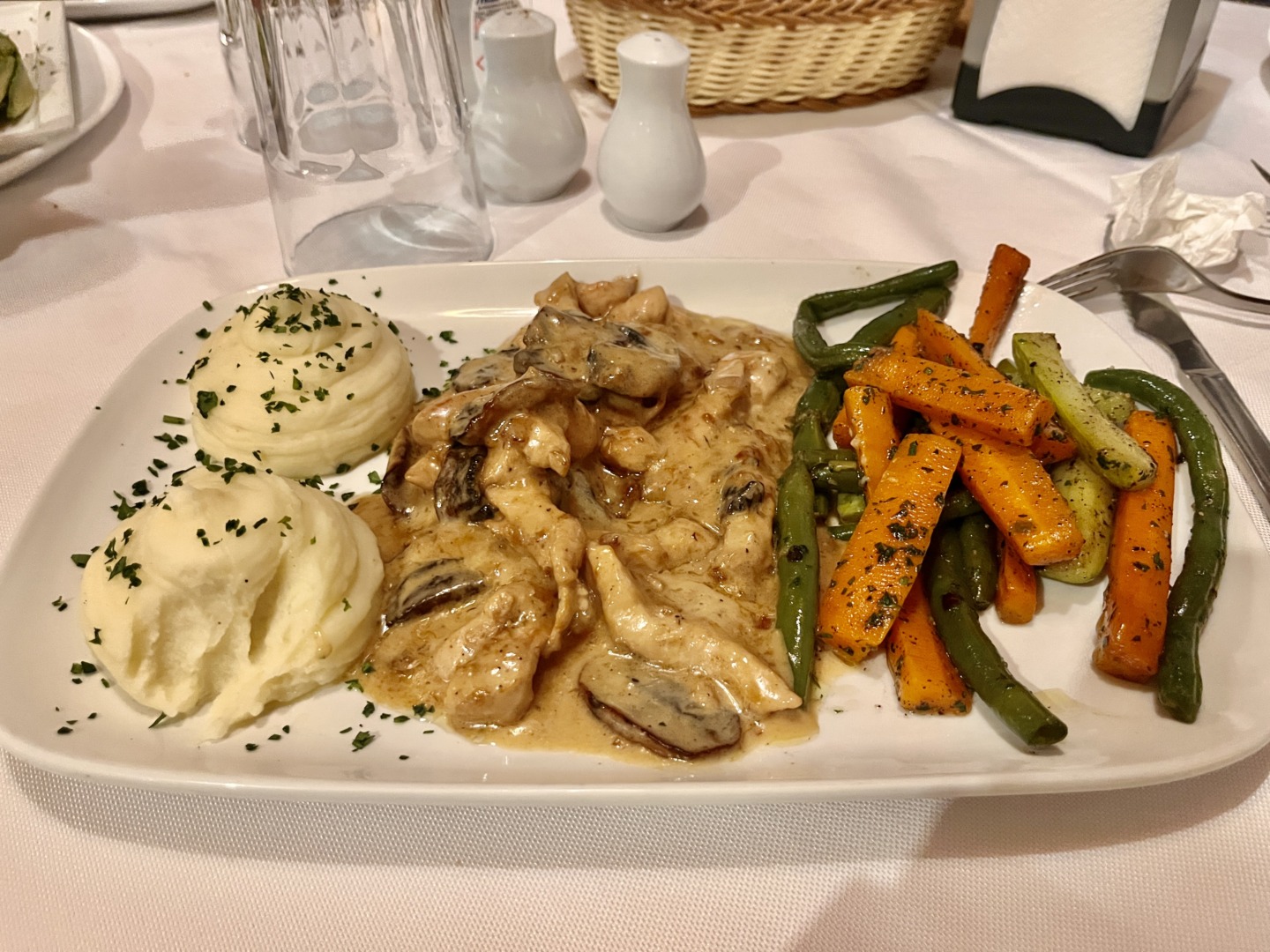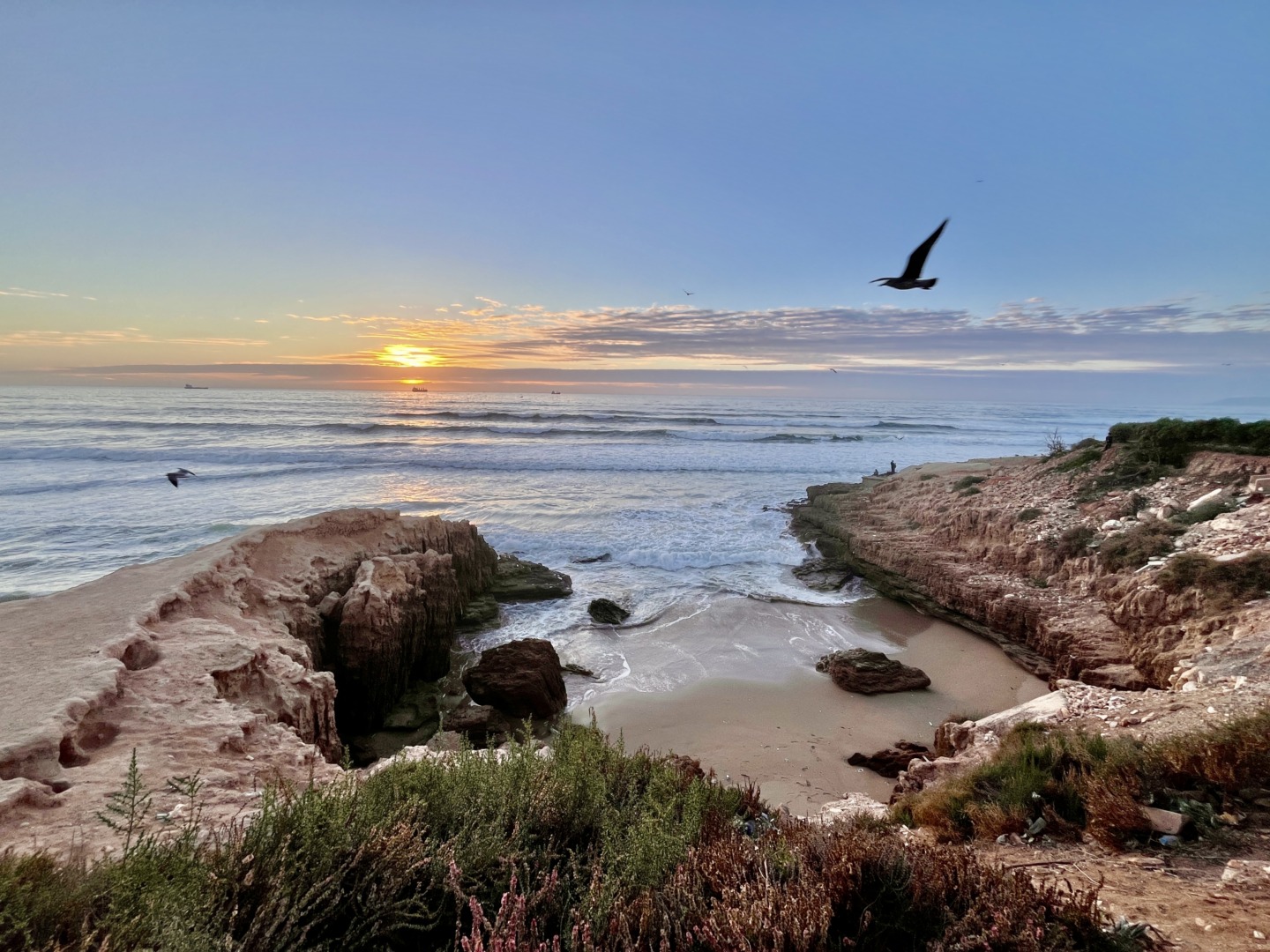 За вечеря отидохме до ресторант La Bargue Gourmande, който се намира на самия бряг със страхотна гледка и до който стигнахме по приятната крайбрежна алея. Бяхме само ние в ресторанта. От време на време идваха други хора, разглеждаха менюто и си тръгваха. Цените бяха по-ниски от ресторанта в Маракеш, порциите – по-големи, а вкусът – също толкова хубав! Препоръчваме ресторанта. По някое време, мъжа ми се стресна сещайки се, че бил оставил газовия котлон в апартамента включен, за да си направи чай, ама съвсем забравил и веднага хукна да се пробира. Та дотук с романтичната вечеря… 🙂 Слава Богу, всичко бе наред!