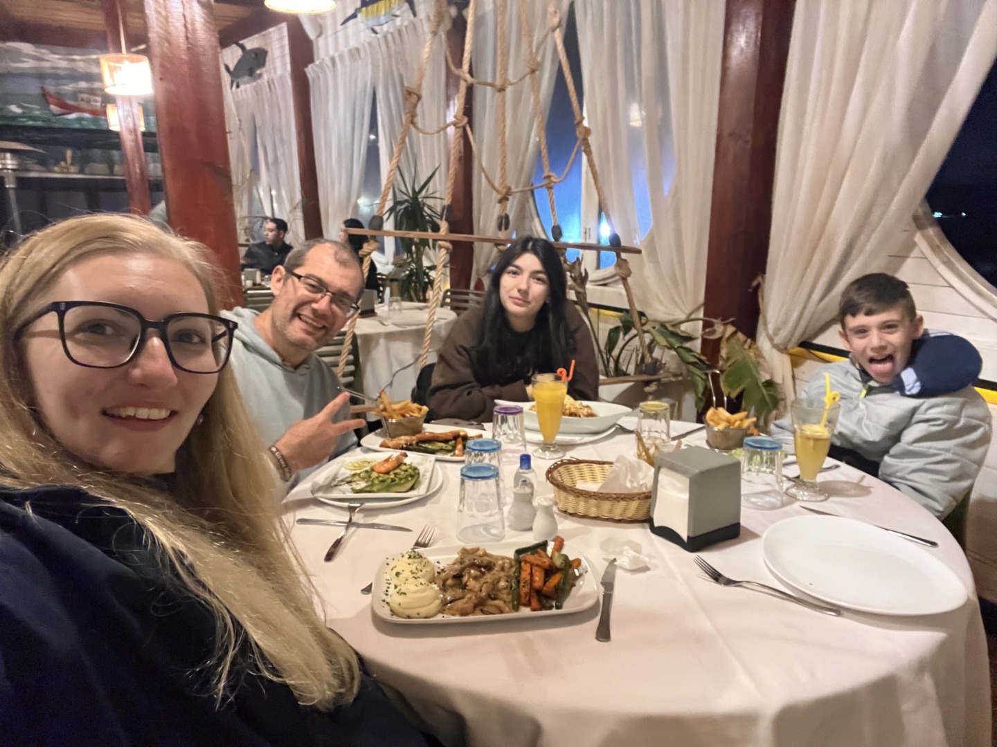 След като ни върнаха в Анза, седнахме на обяд в едно малко заведение за бързо хранене на име Аnza Gourmet. Там поръчахме 1 паста, 1 пица Маргарита, 3 бургера с картофки, 2 напитки и 2 десерта като всичко това бе в нормални към големи порции и ни струваше общо само 20 евро!!