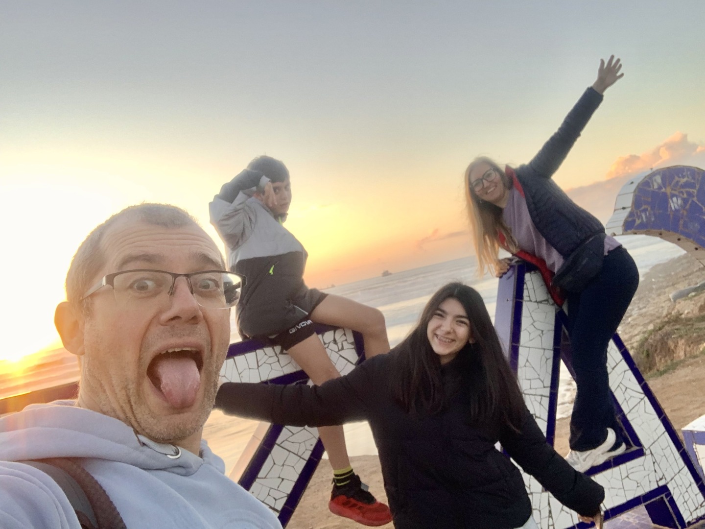 Беше станало залезно време. Затова хвърлихме раниците в апартамента и дим да ни няма. Плажът бе само на 5 минути разстояние и пристигнахме точно навреме. После се разходихме по крайбрежната алея, която бе пълна със семейства със щъкащи насам-натам деца. Имаше детски катерушки, фитнес на открито, футболно игрище и това, което най-много ме втрещи – продаваха охлюви на пара по същия начин, както в България се продава царевица на пара! И имаше опашка пред количката с охлюви! После напазарувахме в близки Карфур, приготвихме си вечеря в апартамента, хапнахме по някой нов екзотичен плод – кактусов плод и ковано и по леглата.