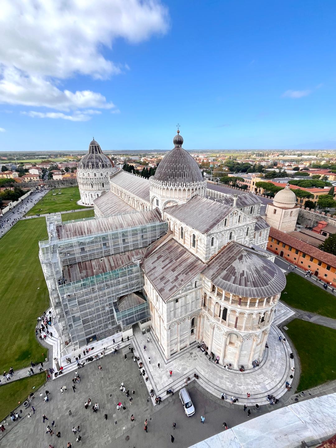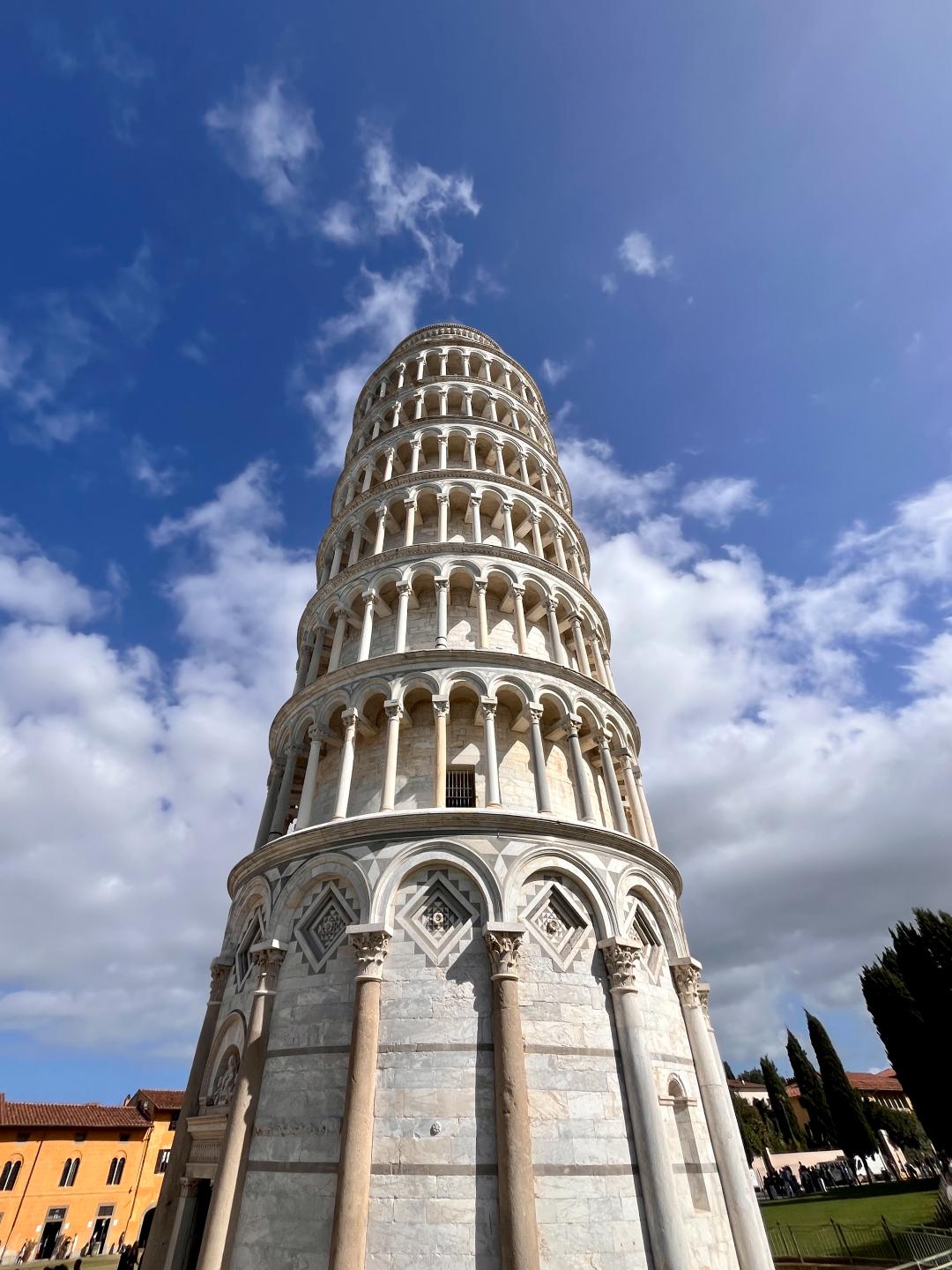 Малко хора знаят, че наклонената кула в Пиза всъщност е камбанарията към катедралата. Тя е висока около 60 метра и до най-горната ѝ част водят 296 стъпала от доста тясно стълбище. Строителството ѝ започва през 1173 г. и се извършва на три етапа в продължение на 177 години. Това се наложило заради меката почва и лошата основа, довели до потъването на сградата от южната й страна. В най-високата ѝ част са разположени седем основни камбани, излети да звънят в музикалната гама.