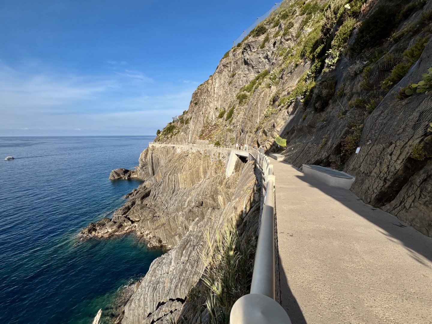 Разходихме се по т.н. “Алея на любовта”, дълга 1200 метра и свързваща Риомаджоре и Манарола. Пътеката е пусната за туристи през 2025 г. след продължила близо 20-годишна реконструкция. Сегашната пътека е построена на мястото на стар път, свързващ двете села. По пътя се намира още тунел, а над него минава железопътна линия.