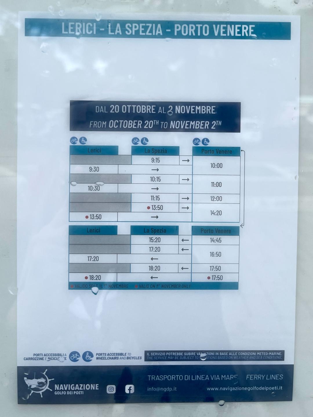 Порто Венере е малък пристанищен град, до който от Ла Специя може да се стигне с автобус или както ние направихме – с ферибот. Цената на двупосочния билет на ферибота бе 15 евро/възрастен и 8 евро/дете.